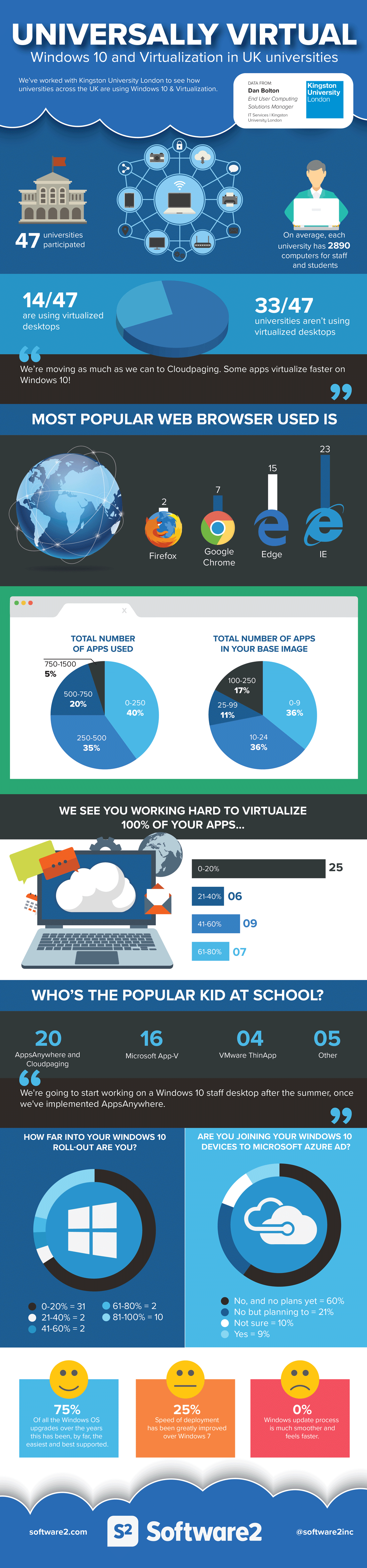 We would like to personally thank Dan Bolton from Kingston University London for his hard work on this survey, and we’d like to thank the 47 universities who took part. We're excited for the progress universities in the UK have made in application virtualization, and we look forward to seeing your improvements in the coming years.